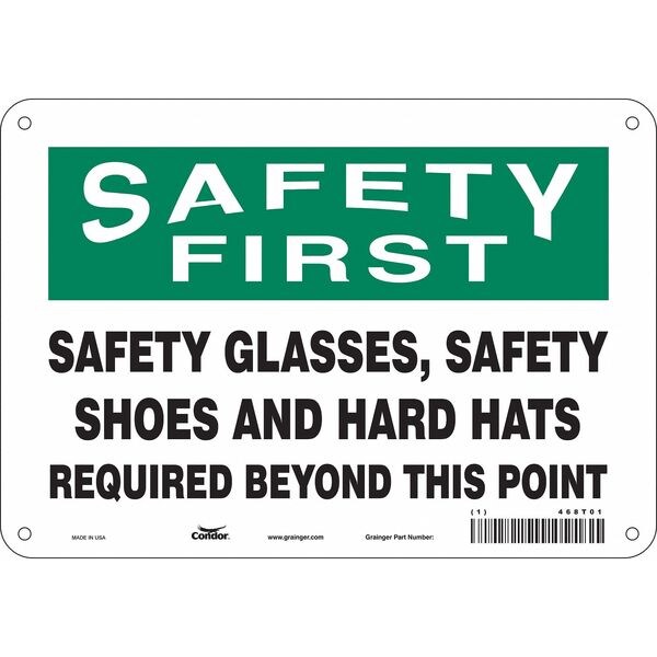 Safety Sign, Vertical Rectangle, Number of Printed Sides 1, English, Sign Format Traditional OSHA, Sign Legend Safety Glasses Safety Shoes And Hard Hats Required Beyond This Point, Sign Legend Background Color White, Sign Legend Style Text