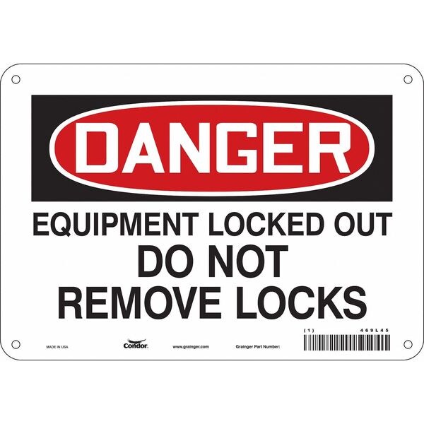 Safety Sign, Vertical Rectangle, Number of Printed Sides 1, English, Sign Format Traditional OSHA, Sign Legend Equipment Locked Out Do Not Remove Locks, Sign Legend Background Color White, Sign Legend Style Text