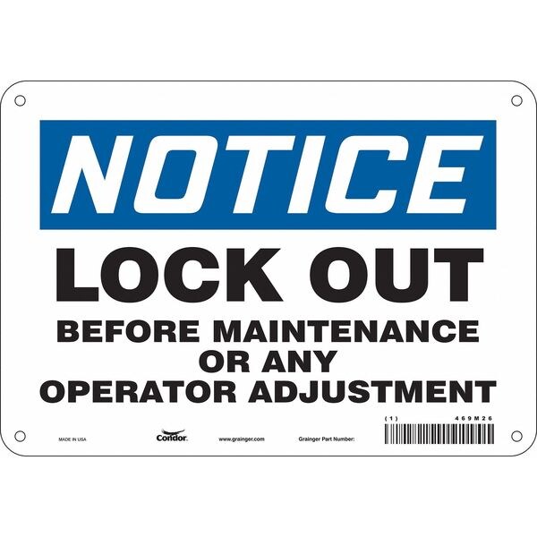 Safety Sign, Vertical Rectangle, Number of Printed Sides 1, English, Sign Format Traditional OSHA, Sign Legend Lock Out Before Maintenance Or Any Operator Adjustment, Sign Legend Background Color White, Sign Legend Style Text