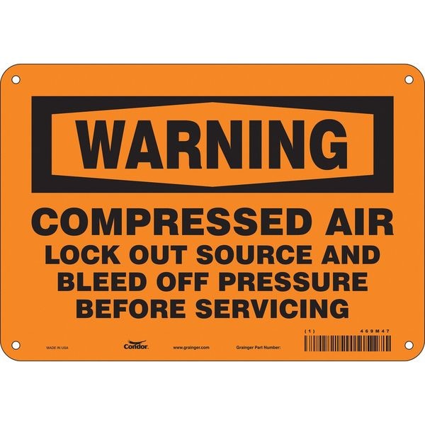 Safety Sign, Vertical Rectangle, Number of Printed Sides 1, English, Sign Format Traditional OSHA, Sign Legend Compressed Air Lock Out Source And Bleed Off Pressure Before Servicing, Sign Legend Background Color Orange, Sign Legend Style Text