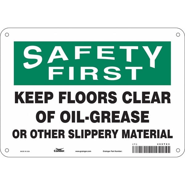 Safety Sign, Vertical Rectangle, Number of Printed Sides 1, English, Sign Format Traditional OSHA, Sign Legend Keep Floors Clear Of Oil-Grease Or Other Slippery Material, Sign Legend Background Color White, Sign Legend Style Text