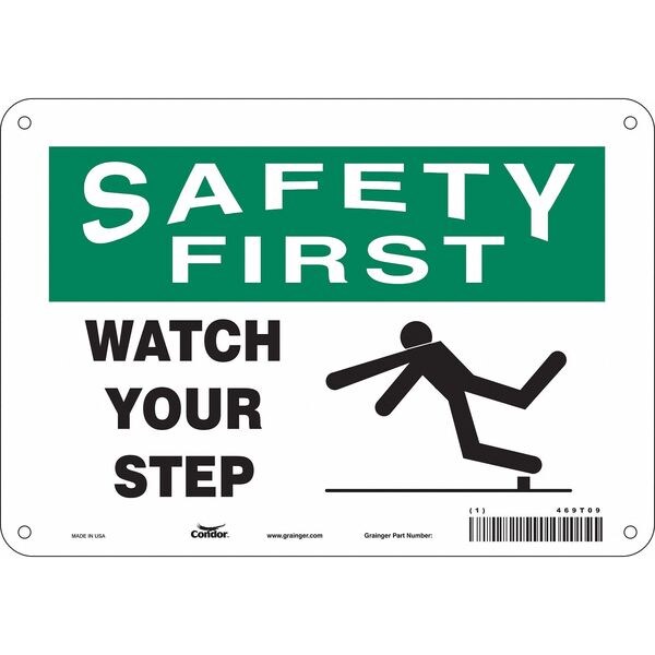 Safety Sign, Vertical Rectangle, Number of Printed Sides 1, English, Sign Format Traditional OSHA, Sign Legend Watch Your Step, Sign Legend Background Color White, Sign Legend Style Symbol and Text