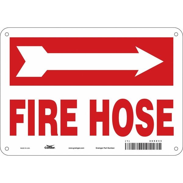 Safety Sign, Vertical Rectangle, Number of Printed Sides 1, English, Sign Format Other Format, Sign Legend Fire Hose, Sign Legend Background Color Red, White, Sign Legend Style Symbol and Text