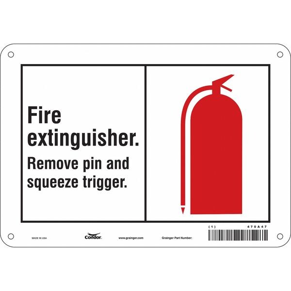 Safety Sign, Vertical Rectangle, Number of Printed Sides 1, English, Sign Legend Fire Extinguisher Remove Pin And Squeeze Trigger., Sign Legend Background Color White, Sign Legend Style Symbol and Text