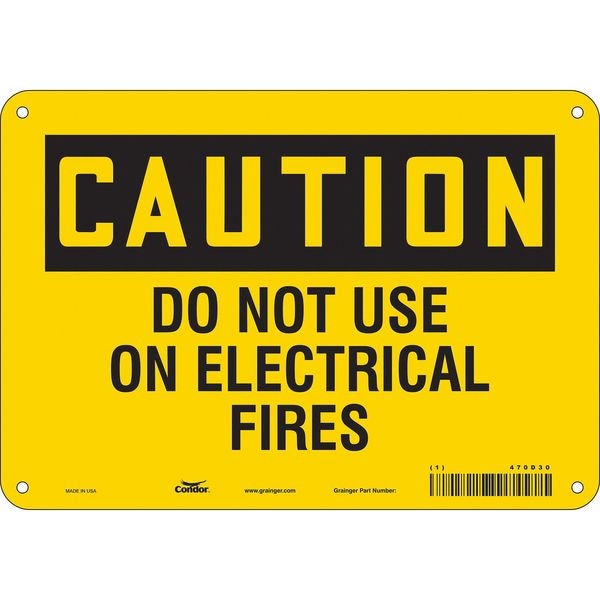 Safety Sign, Vertical Rectangle, Number of Printed Sides 1, English, Sign Format Traditional OSHA, Sign Legend Do Not Use On Electrical Fires, Sign Legend Background Color Yellow, Sign Legend Style Text