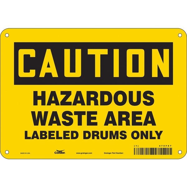 Safety Sign, Vertical Rectangle, Number of Printed Sides 1, English, Sign Format Traditional OSHA, Sign Legend Hazardous Waste Area Labeled Drums Only, Sign Legend Background Color Yellow, Sign Legend Style Text