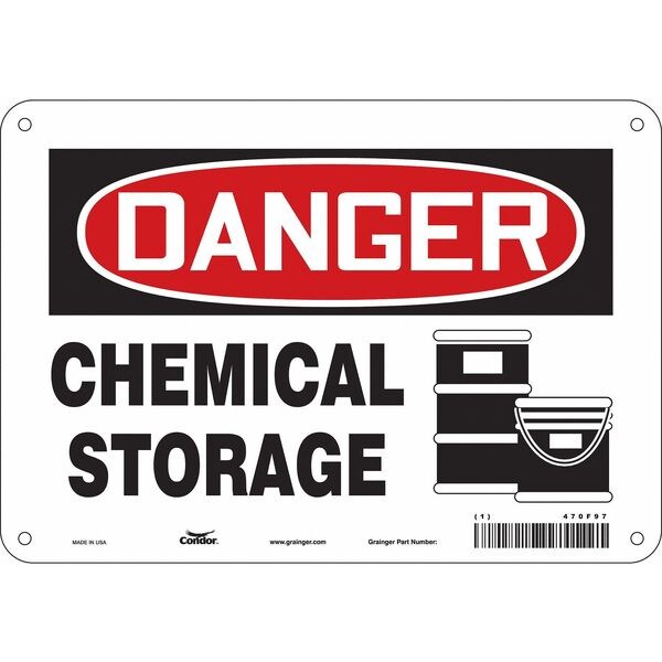 Safety Sign, Vertical Rectangle, Number of Printed Sides 1, English, Sign Format Traditional OSHA, Sign Legend Chemical Storage, Sign Legend Background Color White, Sign Legend Style Symbol and Text