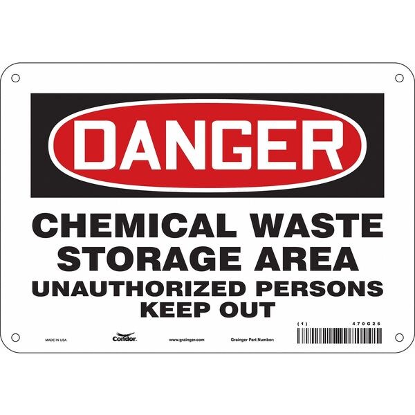 Safety Sign, Vertical Rectangle, Number of Printed Sides 1, English, Sign Format Traditional OSHA, Sign Legend Chemical Waste Storage Area Unauthorized Persons Keep Out, Sign Legend Background Color White, Sign Legend Style Text