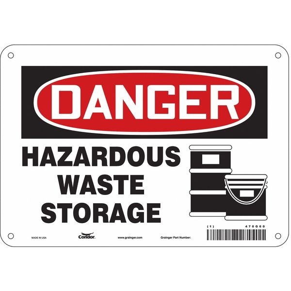 Safety Sign, Vertical Rectangle, Number of Printed Sides 1, English, Sign Format Traditional OSHA, Sign Legend Hazardous Waste Storage, Sign Legend Background Color White, Sign Legend Style Symbol and Text