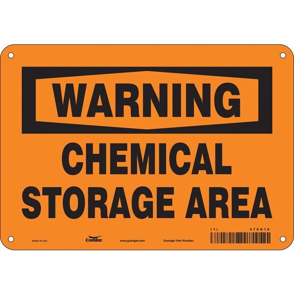 Safety Sign, Vertical Rectangle, Number of Printed Sides 1, English, Sign Format Traditional OSHA, Sign Legend Chemical Storage Area, Sign Legend Background Color Orange, Sign Legend Style Text