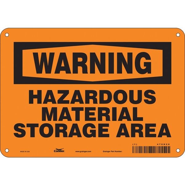 Safety Sign, Vertical Rectangle, Number of Printed Sides 1, English, Sign Format Traditional OSHA, Sign Legend Hazardous Material Storage Area, Sign Legend Background Color Orange, Sign Legend Style Text