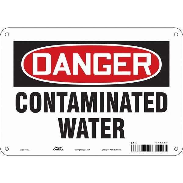 Safety Sign, Vertical Rectangle, Number of Printed Sides 1, English, Sign Format Traditional OSHA, Sign Legend Contaminated Water, Sign Legend Background Color White, Sign Legend Style Text