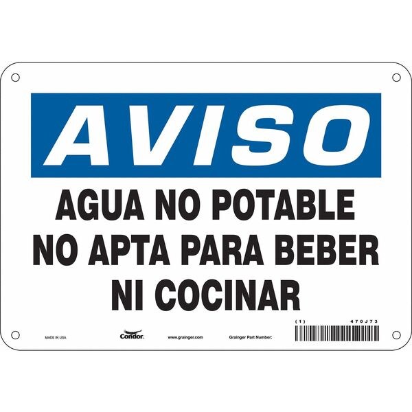 Safety Sign, Vertical Rectangle, Number of Printed Sides 1, English, Sign Format Traditional OSHA, Sign Legend Agua No Potable No Apta Para Beber Ni Cocinar, Sign Legend Background Color White, Sign Legend Style Text