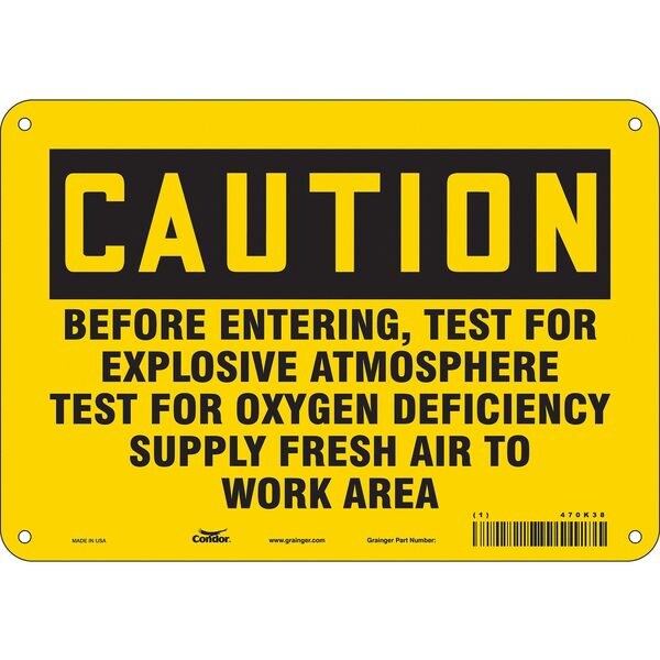 Safety Sign, Vertical Rectangle, Number of Printed Sides 1, English, Sign Format Traditional OSHA, Sign Legend Before Entering, Test For Explosive Atmosphere Test For Oxygen Deficiency Supply Fresh Air To Work Area, Sign Legend Background Color Yellow, Sign Legend Style Text