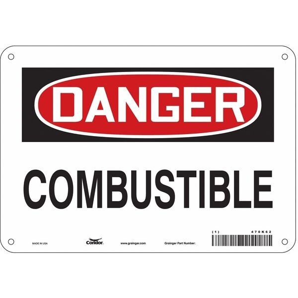 Safety Sign, Vertical Rectangle, Number of Printed Sides 1, English, Sign Format Traditional OSHA, Sign Legend Combustible, Sign Legend Background Color White, Sign Legend Style Text
