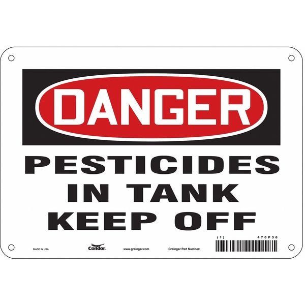 Safety Sign, Vertical Rectangle, Number of Printed Sides 1, English, Sign Format Traditional OSHA, Sign Legend Pesticides In Tank Keep Off, Sign Legend Background Color White, Sign Legend Style Text