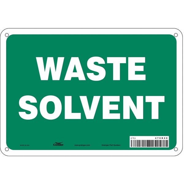 Safety Sign, Vertical Rectangle, Number of Printed Sides 1, English, Sign Format Other Format, Sign Legend Waste Solvent, Sign Legend Background Color Green, Sign Legend Style Text