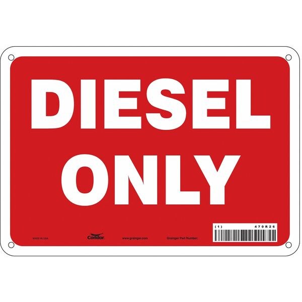 Safety Sign, Vertical Rectangle, Number of Printed Sides 1, English, Sign Format Other Format, Sign Legend Diesel Only, Sign Legend Background Color Red, Sign Legend Style Text