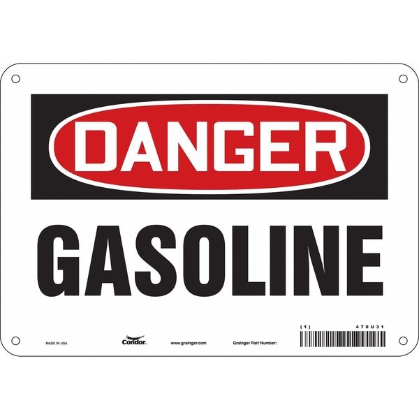 Safety Sign, Vertical Rectangle, Number of Printed Sides 1, English, Sign Format Traditional OSHA, Sign Legend Gasoline, Sign Legend Background Color White, Sign Legend Style Text