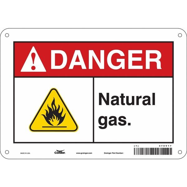 Safety Sign, Vertical Rectangle, Number of Printed Sides 1, English, Sign Format ANSI/OSHA Format, Sign Legend Natural Gas., Sign Legend Background Color White, Sign Legend Style Symbol and Text