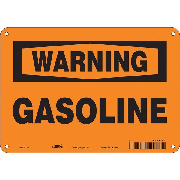 Safety Sign, Vertical Rectangle, Number of Printed Sides 1, English, Sign Format Traditional OSHA, Sign Legend Gasoline, Sign Legend Background Color Orange, Sign Legend Style Text