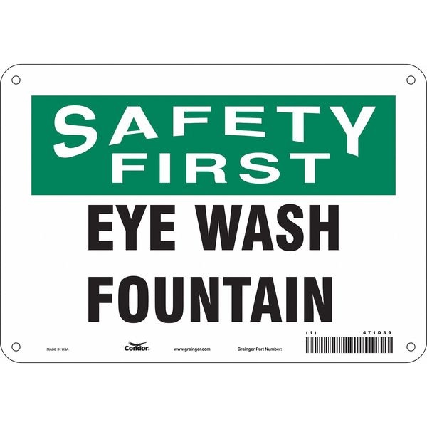 Safety Sign, Vertical Rectangle, Number of Printed Sides 1, English, Sign Legend Eye Wash Fountain, Sign Legend Background Color White, Sign Legend Style Text