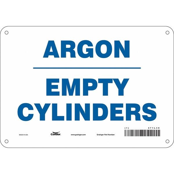 Safety Sign, Vertical Rectangle, Number of Printed Sides 1, English, Sign Format Other Format, Sign Legend Argon Empty Cylinders, Sign Legend Background Color White, Sign Legend Style Text