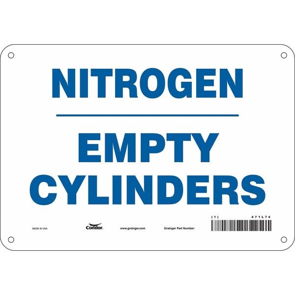 Safety Sign, Vertical Rectangle, Number of Printed Sides 1, English, Sign Format Other Format, Sign Legend Nitrogen Empty Cylinders, Sign Legend Background Color White, Sign Legend Style Text