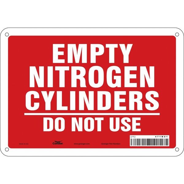Safety Sign, Vertical Rectangle, Number of Printed Sides 1, English, Sign Format Other Format, Sign Legend Empty Nitrogen Cylinders Do Not Use, Sign Legend Background Color Red, Sign Legend Style Text