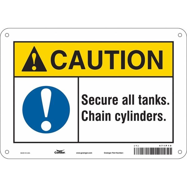 Safety Sign, Vertical Rectangle, Number of Printed Sides 1, English, Sign Format ANSI/OSHA Format, Sign Legend Secure All Tanks Chain Cylinders., Sign Legend Background Color White, Sign Legend Style Symbol and Text