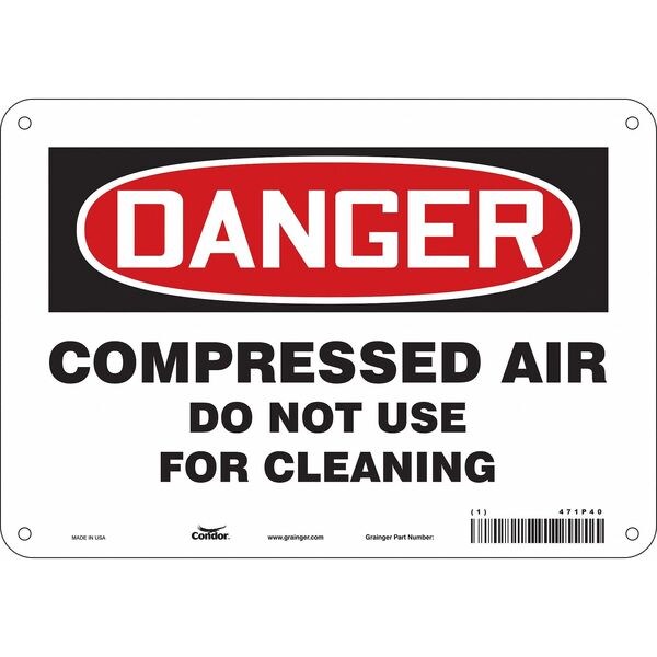 Safety Sign, Vertical Rectangle, Number of Printed Sides 1, English, Sign Format Traditional OSHA, Sign Legend Compressed Air Do Not Use For Cleaning, Sign Legend Background Color White, Sign Legend Style Text
