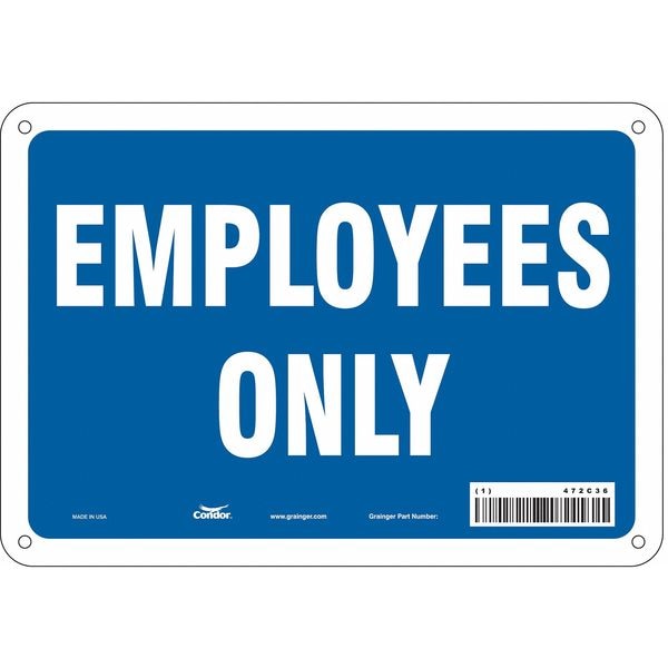 Safety Sign, Vertical Rectangle, Number of Printed Sides 1, English, Sign Format Other Format, Sign Legend Employees Only, Sign Legend Background Color Blue, Sign Legend Style Text