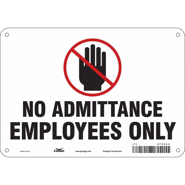 Safety Sign, Vertical Rectangle, Number of Printed Sides 1, English, Sign Format Other Format, Sign Legend No Admittance Employees Only, Sign Legend Background Color White, Sign Legend Style Symbol and Text