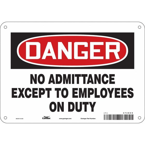 Safety Sign, Vertical Rectangle, Number of Printed Sides 1, English, Sign Format Traditional OSHA, Sign Legend No Admittance Except To Employees On Duty, Sign Legend Background Color White, Sign Legend Style Text