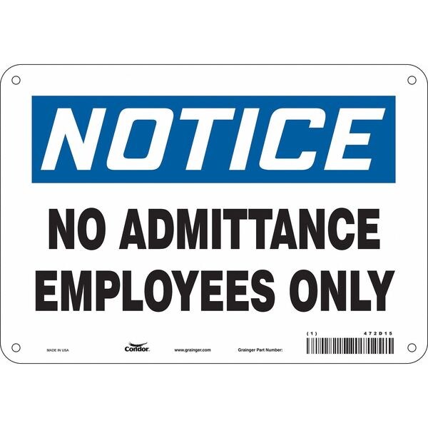 Safety Sign, Vertical Rectangle, Number of Printed Sides 1, English, Sign Format Traditional OSHA, Sign Legend No Admittance Employees Only, Sign Legend Background Color White, Sign Legend Style Text