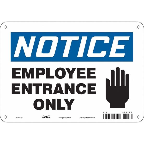 Safety Sign, Vertical Rectangle, Number of Printed Sides 1, English, Sign Format Traditional OSHA, Sign Legend Employee Entrance Only, Sign Legend Background Color White, Sign Legend Style Symbol and Text