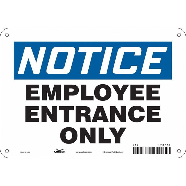Safety Sign, Vertical Rectangle, Number of Printed Sides 1, English, Sign Format Traditional OSHA, Sign Legend Employee Entrance Only, Sign Legend Background Color White, Sign Legend Style Text