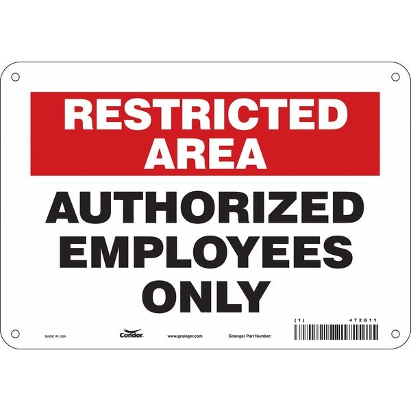 Safety Sign, Vertical Rectangle, Number of Printed Sides 1, English, Sign Format Other Format, Sign Legend Authorized Employees Only, Sign Legend Background Color Red, White, Sign Legend Style Text