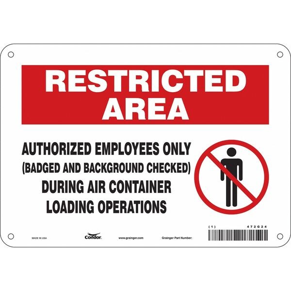 Safety Sign, Vertical Rectangle, Number of Printed Sides 1, English, Sign Format Other Format, Sign Legend Authorized Employees Only (Badged And Background Checked) During Air Container Loading Operations, Sign Legend Background Color Red, White, Sign Legend Style Symbol and Text