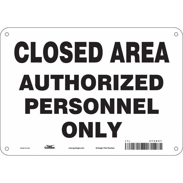 Safety Sign, Vertical Rectangle, Number of Printed Sides 1, English, Sign Format Other Format, Sign Legend Closed Area Authorized Personnel Only, Sign Legend Background Color White, Sign Legend Style Text