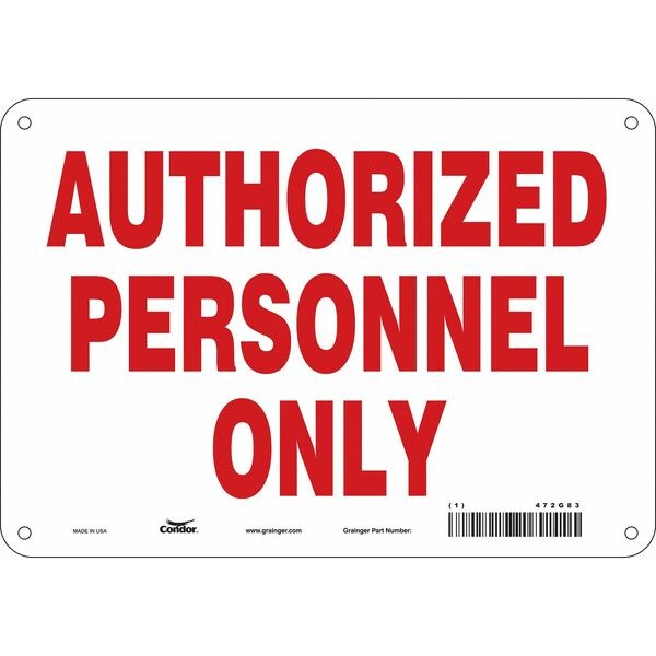 Safety Sign, Vertical Rectangle, Number of Printed Sides 1, English, Sign Format Other Format, Sign Legend Authorized Personnel Only, Sign Legend Background Color White, Sign Legend Style Text