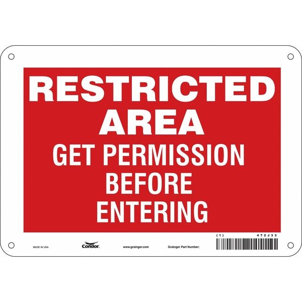 Safety Sign, Vertical Rectangle, Number of Printed Sides 1, English, Sign Format Other Format, Sign Legend Restricted Area Get Permission Before Entering, Sign Legend Background Color Red, White, Sign Legend Style Text