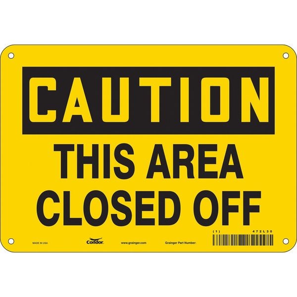 Safety Sign, Vertical Rectangle, Number of Printed Sides 1, English, Sign Legend This Area Closed Off, Sign Legend Background Color Yellow, Sign Legend Style Text