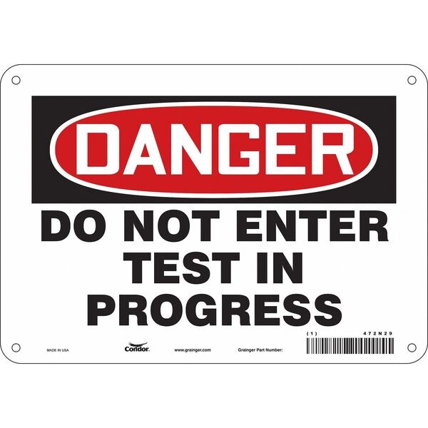 Safety Sign, Vertical Rectangle, Number of Printed Sides 1, English, Sign Format Traditional OSHA, Sign Legend Do Not Enter Test In Progress, Sign Legend Background Color White, Sign Legend Style Text