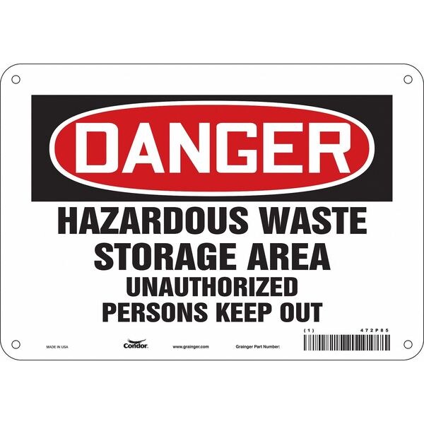 Safety Sign, Vertical Rectangle, Number of Printed Sides 1, English, Sign Format Traditional OSHA, Sign Legend Hazardous Waste Storage Area Unauthorized Persons Keep Out, Sign Legend Background Color White, Sign Legend Style Text