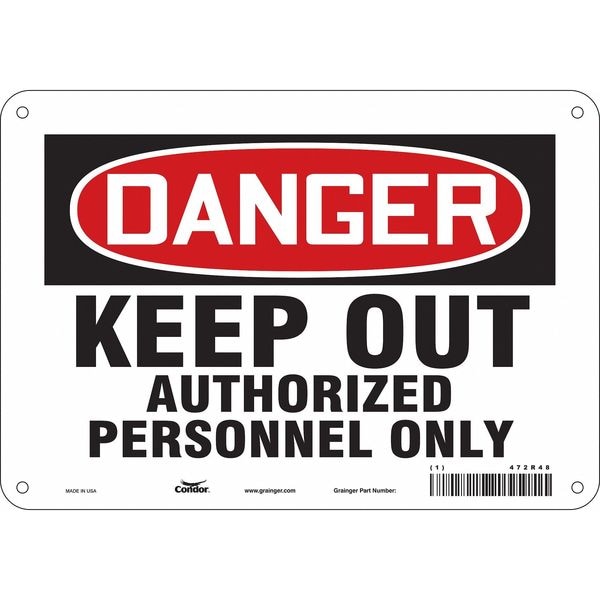 Safety Sign, Vertical Rectangle, Number of Printed Sides 1, English, Sign Format Traditional OSHA, Sign Legend Keep Out Authorized Personnel Only, Sign Legend Background Color White, Sign Legend Style Text