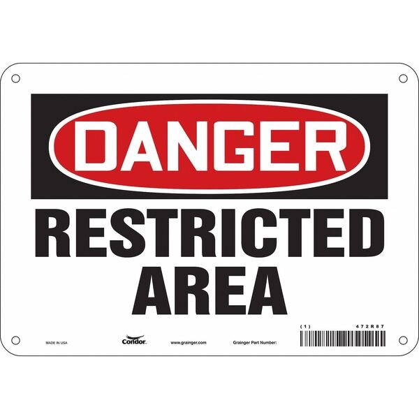 Safety Sign, Vertical Rectangle, Number of Printed Sides 1, English, Sign Format Traditional OSHA, Sign Legend Restricted Area, Sign Legend Background Color White, Sign Legend Style Text