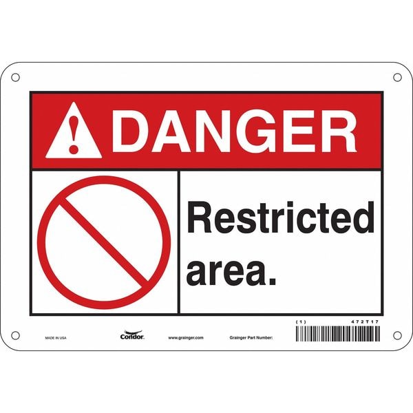 Safety Sign, Vertical Rectangle, Number of Printed Sides 1, English, Sign Format ANSI/OSHA Format, Sign Legend Restricted Area., Sign Legend Background Color White, Sign Legend Style Symbol and Text