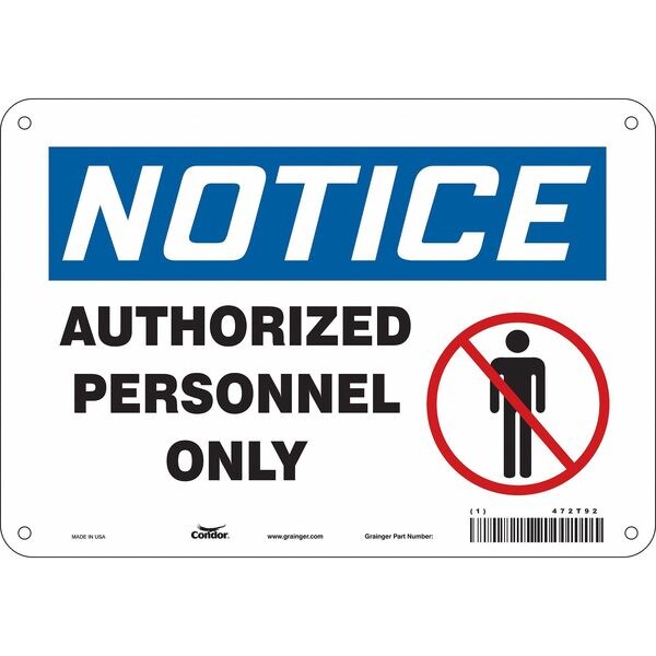Safety Sign, Vertical Rectangle, Number of Printed Sides 1, English, Sign Format Traditional OSHA, Sign Legend Authorized Personnel Only, Sign Legend Background Color White, Sign Legend Style Symbol and Text