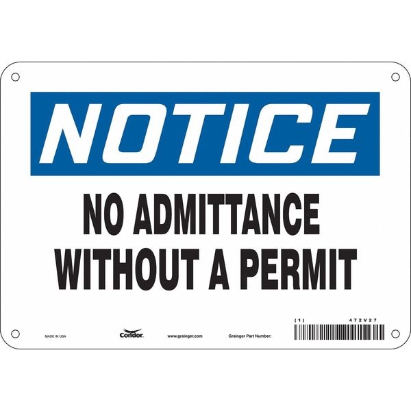 Safety Sign, Vertical Rectangle, Number of Printed Sides 1, English, Sign Format Traditional OSHA, Sign Legend No Admittance Without A Permit, Sign Legend Background Color White, Sign Legend Style Text